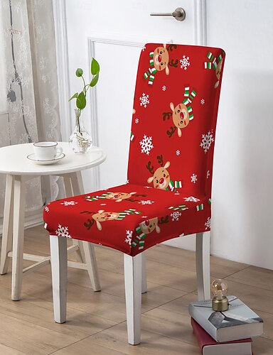 Рождественский чехол для обеденного стула, чехол из полиэстера с геометрическим принтом, эластичный нескользящий чехол для стула для дома или вечеринки