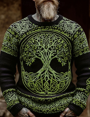 Муж. Викинг Дерево жизни Пуловер Свитер Вязаная одежда "Круглый вырез ""под горло""" Ретро На каждый день Отпуск Повседневные 3D печать Вязанная Сохраняет тепло Длинный рукав Весна Осень Зима