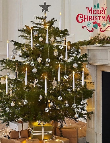 Набор из 12 светодиодных мерцающих беспламенных свечей с дистанционным управлением и крючками для хрустальных шаров. Беспламенные конические свечи на батарейках идеально подходят для украшения на