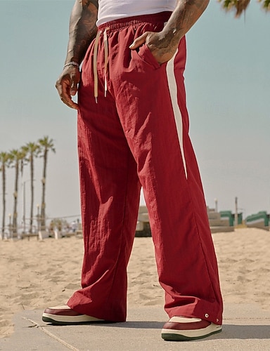 Муж. Льняные брюки Штаны Летние штаны Пляжные штаны Кулиска Карман Эластичная талия Полотняное плетение Комфорт Дышащий Отпуск Повседневные Праздники Гавайский Богемный Черный Белый