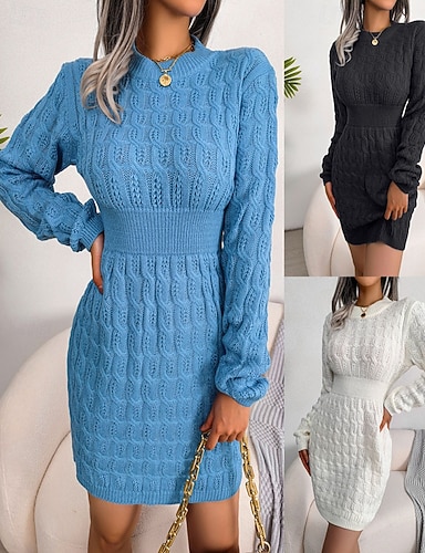 Жен. Мини-платье Платье-свитер Облегающий силуэт Платье-футляр Мода Современное Повседневные выходные Стандартный Полотняное плетение Длинный рукав Вырез под горло Черный Белый Синий Весна Осень