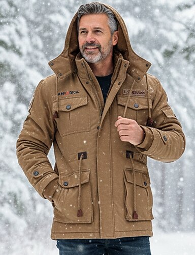 Муж. Американский флаг Флисовая жилетка Военная куртка Парка Сохраняет тепло Сгущать На каждый день на открытом воздухе Дом Съемный капюшон Несколько карманов Стильное пальто Верхняя одежда Осень Зима