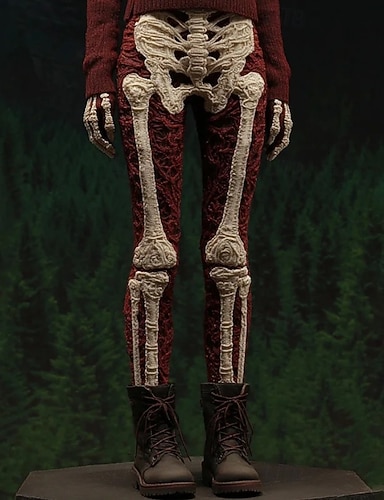 Жен. Леггинсы Отпуск Винтаж Мода Полная длина ЗавышеннаяPantsHalloween Графика Черепа Хэллоуин Рисунок Мягкий Дышащий Эластичная Официальные Отпуск Для улицы Темно-Серый Винный Цвет загара Черный