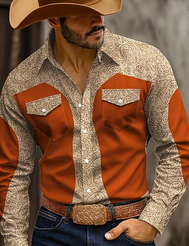 Муж. Огурцы Цветочный принт Этнический Рубашка Западная рубашка Ковбойская рубашка Длинный рукав Винтаж Ретро на открытом воздухе Повседневные Рабочая одежда Весна Осень Отложной 3D