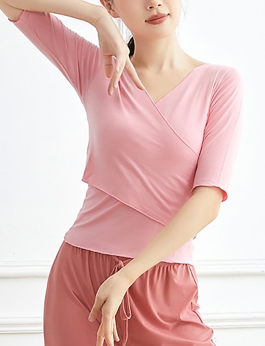 Латино Бальные танцы Кофты Оборки Чистый цвет Планка Жен. Выступление Учебный Рукав до локтя Завышенная талия Смесь хлопка