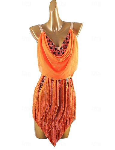 Латино Платье С кисточками Стразы Жен. Выступление На каждый день Без рукавов Спандекс