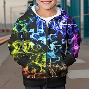Мальчики 3D Геометрический принт Толстовка Пальто Верхняя одежда Длинный рукав Осень Зима Активный Уличный стиль Круто Полиэстер Дети 3-12 лет Молния Для улицы Повседневные Стандартный