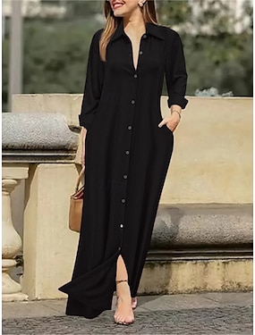 женское элегантное платье макси платье пуговицы элегантный v-образный вырез длинный рукав черный белый красный цвет