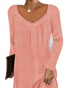 Жен. Вязаная ткань Платье-свитер На каждый день Мягкий Чистый цвет Рельефный узор Вырез под горло Трикотаж Длинный рукав Длинные топы Вязать на открытом воздухе Повседневные выходные Черный Зеленый