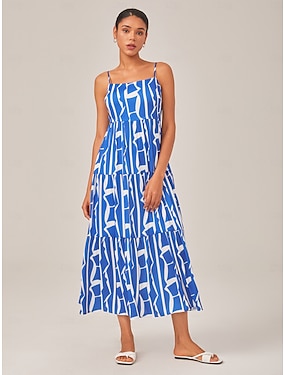 Мини платье для женщин малое платье платье A-силуэта топ в стиле танк летнее платье отпуск стильный повседневный обычная посадка графика геометрия без рукавов круглый вырез синее лето