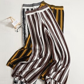 Жен. Широкие Брюки Мода Уличный стиль Полная длина Нормальная Полоски Карман Эластичная талия С принтом удобный Воздухопроницаемость на открытом воздухе На каждый день Повседневные