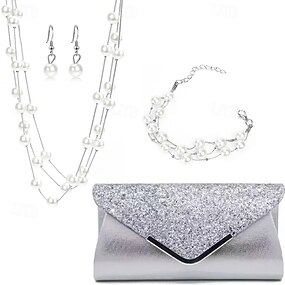 Набор украшений 3 Белый Жемчуг Хром 1 браслет Серьги Ожерелья Жен. Элегантный стиль Винтаж Мода Старинный Классический Комплект ювелирных изделий Назначение Свадьба Для вечеринок Свадебный гость