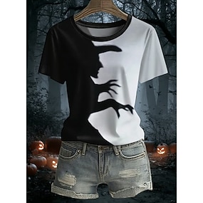 Хэллоуин Женская Футболка Ведьма Графика Череп Винтажный Стильный Классический Короткий Рукав Круглый Вырез Обычные Топы Повседневная Выходные Печать Черный Оранжевый Коричневый Зеленый Хаки Весна
