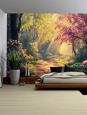 лес растение цветок бабочка тропинка пейзаж подвесной гобелен настенная живопись большой гобелен настенная живопись украшение фото фон ковер занавеска дом спальня гостиная украшение