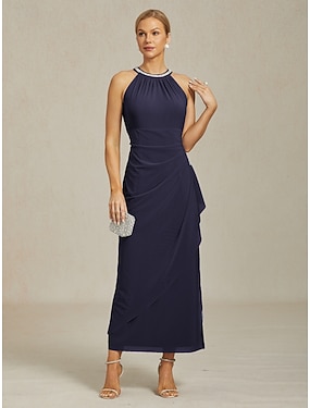 Жен. Длинное платье Платье-футляр Элегантный стиль Для вечеринки коктейль Сплошной цвет Без рукавов Вырез под горло Темно синий Лето