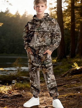 Мальчики 3D дерево Комплект с капюшоном и спортивными штанами Спортивный костюм Тренировочные костюмы Длинный рукав Весна Осень Повседневные Классический На каждый день Дети 4-12 лет Капюшон