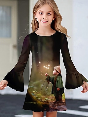 Хэллоуин Девушки ' 3D Графика Платье Длинный рукав Лето Весна Отпуск Повседневные Праздники Принцесса Красивый Милая Дети 4-12 лет Повседневное платье Платье A-силуэта До колена Стандартный