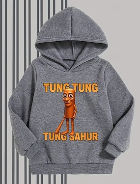 Толстовка с капюшоном и принтом 3D Tung Tung для мальчиков, с длинным рукавом, весна-осень, модная уличная одежда для детей 4-12 лет, с капюшоном, для активного отдыха, на каждый день, стандартного