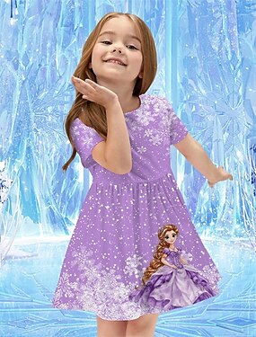 Девушки ' 3D Графика Мультипликация Платье С короткими рукавами Лето Весна Отпуск Повседневные Праздники Принцесса Красивый Милая Дети 4-12 лет Повседневное платье Платье A-силуэта До колена