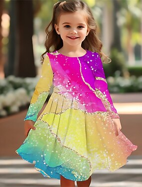 Девушки ' 3D Графика Платье Длинный рукав Лето Весна Отпуск Повседневные Праздники Принцесса Красивый Милая Дети 4-12 лет Повседневное платье Платье A-силуэта До колена Стандартный