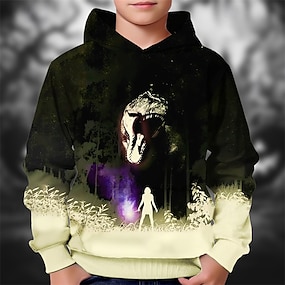 Хэллоуин Мальчики 3D Мультипликация Динозавр Толстовка Длинный рукав Весна Осень Мода Уличный стиль Дети 4-12 лет Капюшон на открытом воздухе Повседневные Стандартный