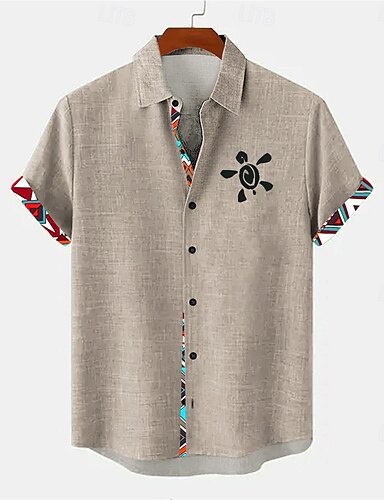 Муж. Геометрический принт Льняная рубашка Гавайская рубашка Кнопка рубашка С короткими рукавами Винтаж Ретро Отпуск Повседневные Праздники Лето Весна Отложной 3D
