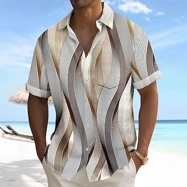Муж. Геометрический принт Полоски Волны Рубашка Летняя рубашка Кнопка рубашка С короткими рукавами Мода Повседневная на открытом воздухе Отпуск На каждый день Лето Весна Отложной 3D