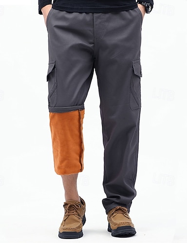 Муж. Спортивные штаны-карго Флисовые штаны Бегун Штаны Спортивные штаны прямого кроя Кулиска Эластичная талия Мульти карман Сплошной цвет С защитой от ветра На открытом воздухе Полная длина