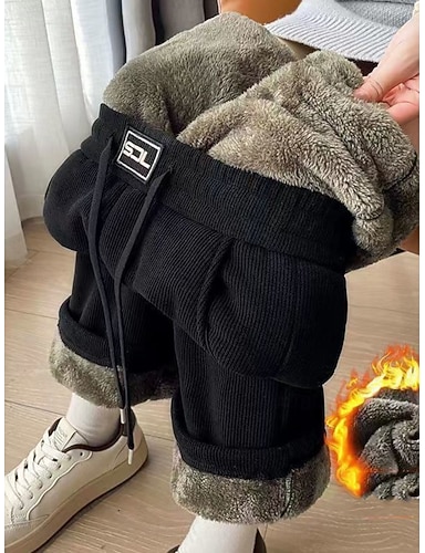 Жен. Флисовые штаны Чино Мода Уличный стиль Полная длина Завышенная Полотняное плетение Карман Эластичный пояс удобный Мягкий Удобный Эластичная на открытом воздухе Для улицы