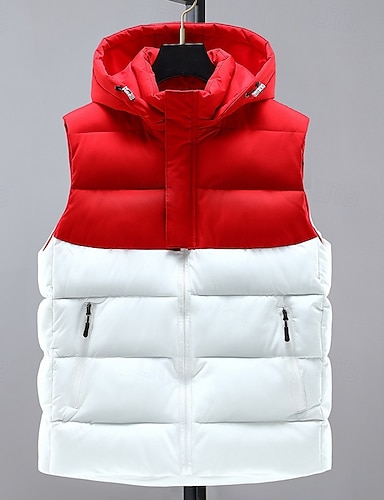 Муж. Пуховик Жилет На подкладке Жилет Стеганый жилет Повседневные Свидание Отпуск Мода На каждый день Наступила зима Карман Полиэстер Сохраняет тепло Удобный Сплошной цвет Молния Капюшон Стандартный