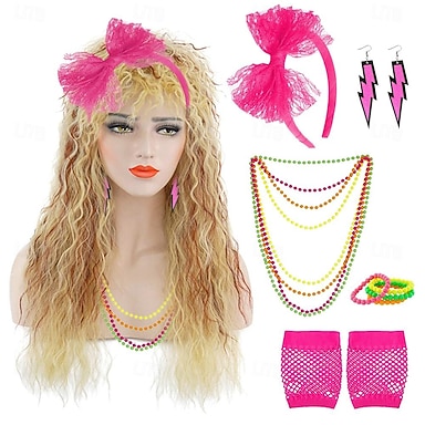 Парик в стиле 80-х для женщин, рокерский парик, длинный вьющийся светлый рыжевато-коричневый парик для карнавала (только парики)