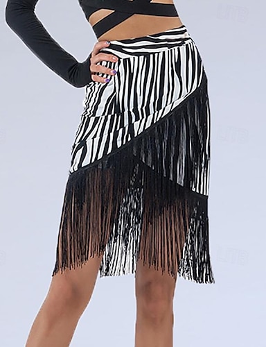 Латино Бальные танцы Юбки Рисунок С кисточками Чистый цвет Жен. Выступление Учебный Завышенная талия Спандекс