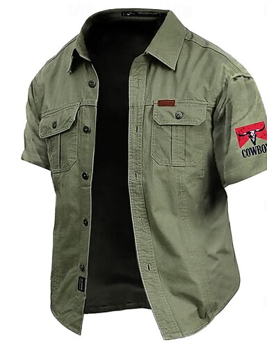 Муж. Печать коровы Ковбой Рабочие рубашки Западная рубашка Рубашка-карго С короткими рукавами На каждый день Тактический Для занятий спортом На выход Лето Весна Отложной С принтом