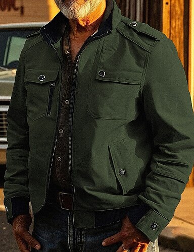 Муж. Практичная куртка Куртка-карго Отпуск Повседневные Износостойкий Карман Осень Зима Полотняное плетение Мода Классика Воротник-стойка Обычная Черный Красный Цвет хаки Военно-зеленный Темно-синий
