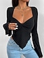 Жен. Бархат Elegant Нарядный Блуза Сплошной цвет Полотняное плетение Элегантный стиль Богемия Винтаж Длинный рукав V-образный вырез Обычные топы Повседневные Праздники На выход Рюши Ассиметричный