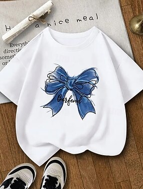 Девочки 3D Бантик Футболка С короткими рукавами Лето Весна Мода Классический Дети 4-12 лет Вырез под горло на открытом воздухе Повседневные Стандартный