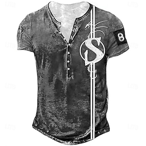 Муж. Дракон Letter 'S' Футболка Рубашка Хенли С короткими рукавами Спорт Мода Оригинальный рисунок на открытом воздухе Для улицы Повседневные Лето Темно-зеленый Темно-коричневый Черный Серый Хенли