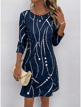 Жен. Платье средней длины Платье прямого кроя Летнее платье Платье с принтом Активный Мода Уличный стиль на открытом воздухе Повседневные Свидание Стандартный Графика Рукав до локтя Разделенная шея