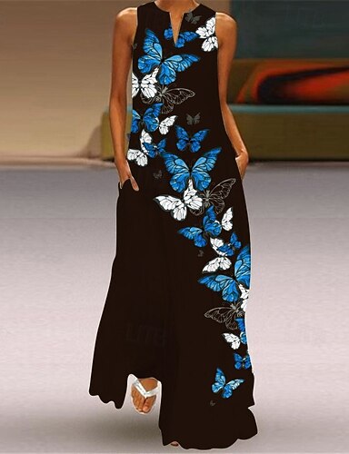 Жен. длинное платье платье макси Платье в стиле бохо Элегантный стиль Винтаж Мода на открытом воздухе Для вечеринок Повседневные Стандартный Графика Бабочка Длинный рукав Вырез под горло