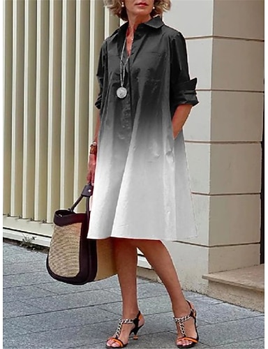 женское платье-рубашка повседневное платье платье-рубашка миди платье для отдыха на каждый день мода современная рубашка воротник пуговицы карман рукав 3/4 лето весна свободный крой омбре
