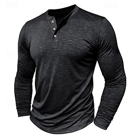 Муж. Рубашка Хенли Футболка Рубашка с длинным рукавом Сплошной цвет Хенли на открытом воздухе Для улицы Длинный рукав Мягкий Одежда Повседневные На каждый день Уличный стиль