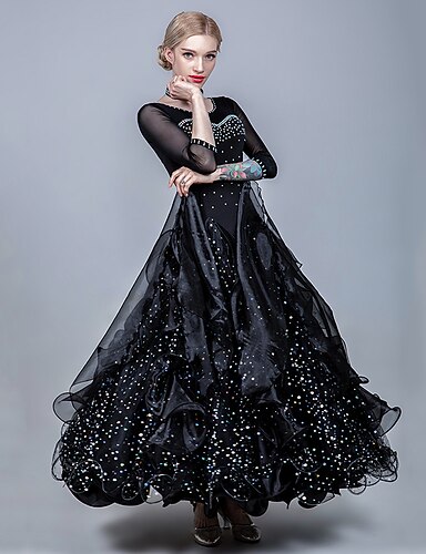 Бальные танцы Платье Планка Жен. Учебный Выступление Длинный рукав Завышенная талия Шифон Тюль Бархат