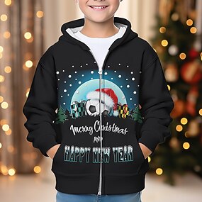 Мальчики 3D Дед Мороз Каждый Толстовка Пальто Верхняя одежда Длинный рукав 3D печать Осень Зима Мода Уличный стиль Круто Полиэстер Дети 3-12 лет на открытом воздухе Повседневные Стандартный