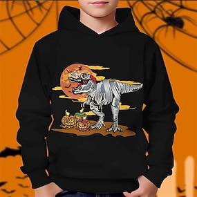 Хэллоуин Мальчики 3D Тыква Динозавр Толстовка Длинный рукав Весна Осень Мода Уличный стиль Дети 4-12 лет Капюшон на открытом воздухе Повседневные Стандартный