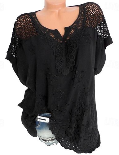 Футболка Нарядные Топы Жен. Черный Белый Красный Полотняное плетение Кружева Для улицы Повседневные Мода V-образный вырез Стандартный S