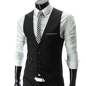 Муж. Жилет Официальные Свадьба Офис Бизнес Деловые Формальный Весна Осень Карман Полиэстер Быстровысыхающий Чистый цвет Однобортный крой V-образный вырез Стандартный Черный Белый Желтый Розовый Жилет