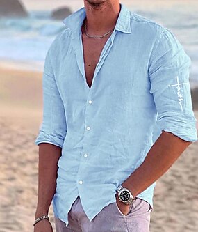 Муж. Рубашка Льняная рубашка Летняя рубашка Одежда для пляжа Кнопка рубашка Полотняное плетение Отпуск Повседневные Черный Белый Розовый Синий Длинный рукав Лацкан Весна лето Одежда