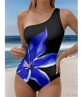 Купальники для женщин Однослойный монокини Купальник Сзади открытый Коррекция живота Высокая талия Слим Отпуск Пляжная одежда Цветочный асимметричный вырез Без рукавов