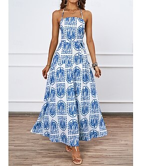 Жен. Длинное платье Повседневное платье Платье A-силуэта Платье-комбинация Платье в стиле бохо Богемия На каждый день Богемный Отпуск Повседневные Стандартный Цветочный принт Без рукавов На бретелях