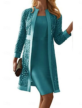 Комплект платьев для женщин миди платье однотонное платье с дырочками повседневное простое кружевное комбинированное платье с длинными рукавами круглый вырез на открытом воздухе повседневное шампань
